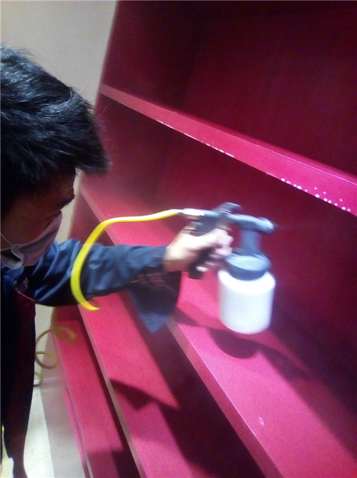 主要污染源:木工板打造的柜体喷红色油漆,油漆味严重