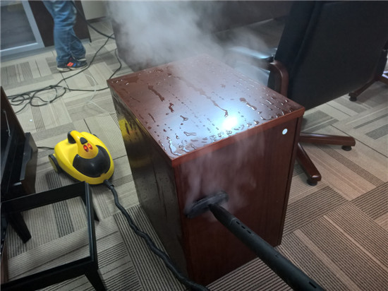 我公司施工人员对油漆味家具表面进行高温熏蒸除油漆味作业