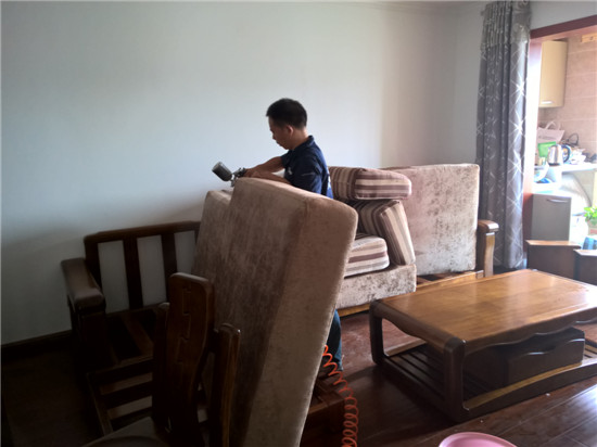 紫薇东进小区业主新家全为实木家具,有比较浓烈的油漆味,我们公司在除甲醛的同时,首先要除去油漆味,接下来再实施除甲醛工作。下面为具体施工现场。业主很满意。