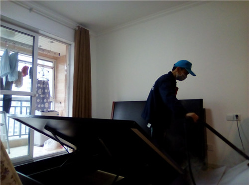 工程概况:治理前检测显示房间内氨气超标3倍,房间异味明显,公司技术人员判断主要污染源为密度板为主材的高箱床及人造板式衣柜;