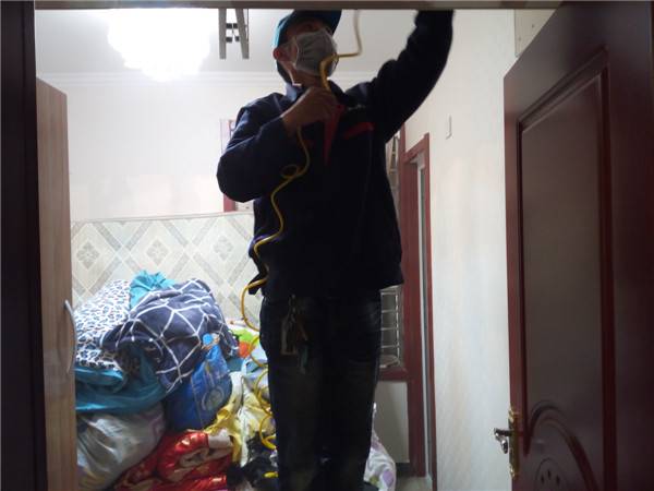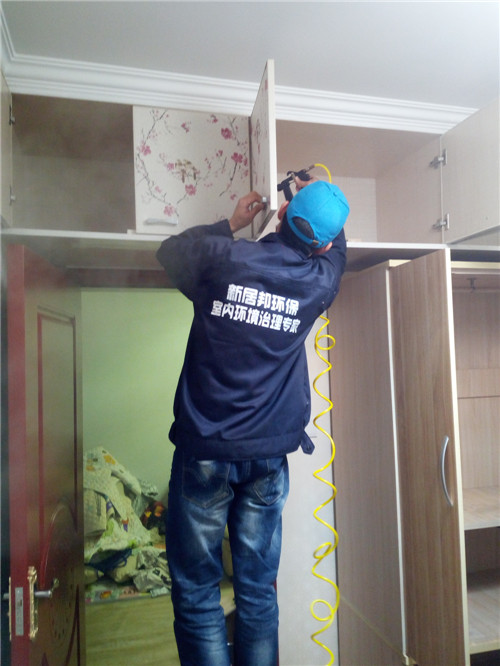 工程概况:治理前检测显示甲醛超过国标水平,公司技术人员判断主要污染源为密度板为主材的衣柜及人造板式衣柜;