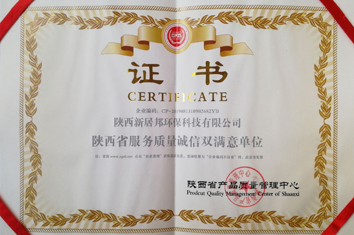 我公司获得甲醛检测治理行业陕西省服务质量诚信双满意单位荣誉称号: