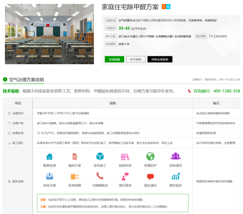 正规公司会签订详细的服务合同,明确以下内容:治理前后的检测数据标准(需符合《室内空气质量标准》GB/T18883-2022)、治理范围及使用的产品名称(避免使用三无药剂)、质保期限(业内通常为 3-10 年,终身质保需谨慎核实)、反弹后的处理方案(如免费返工至达标)。特别要注意,合同中是否包含 “第三方 CMA 检测达标” 的承诺,这是避免纠纷的关键。