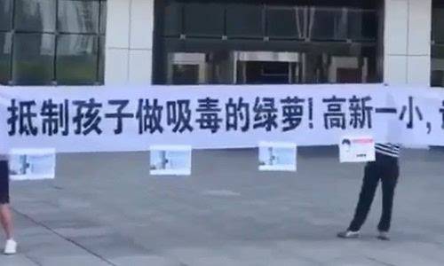 家长拉条幅抗议学校甲醛超标