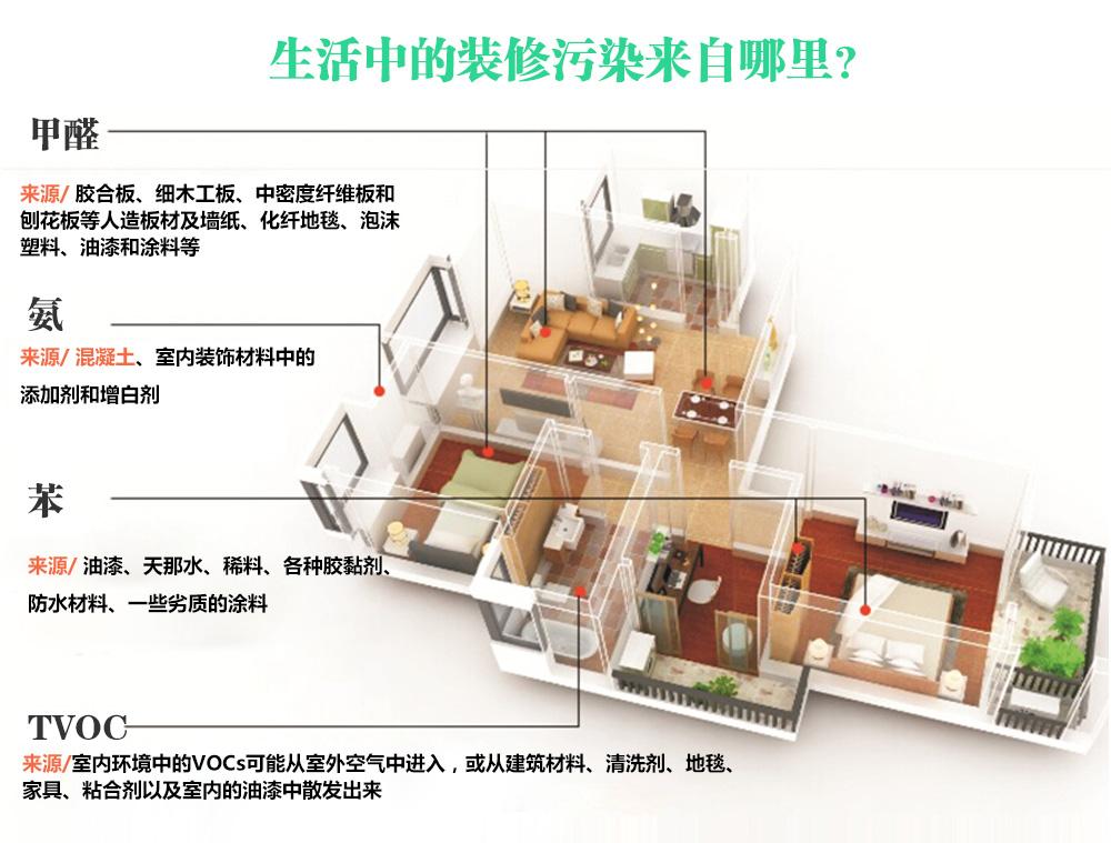 首先,我们来了解下什么是室内空气污染,室内空气污染中有害物主要有哪些。继“煤烟型污染”和“光化学烟雾型污染”后,现在人正步入以“室内空气污染”为标志的第三污染时期(出自《室内空气污染控制》)。室内污染物品类繁多,美国环保局“室内空气质量大会报告”中曾指出,在新建的房屋中存在900多种有机污染物。在这些污染物中,甲醛危害性较大,挥发持续时间最长,是主要室内污染物之一。