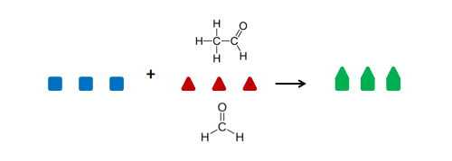 如图所示,蓝色代表除醛净味双效活性官能团,红色代表醛基,绿色代表最终聚合生成的无毒非挥发性的高分子化合物。
